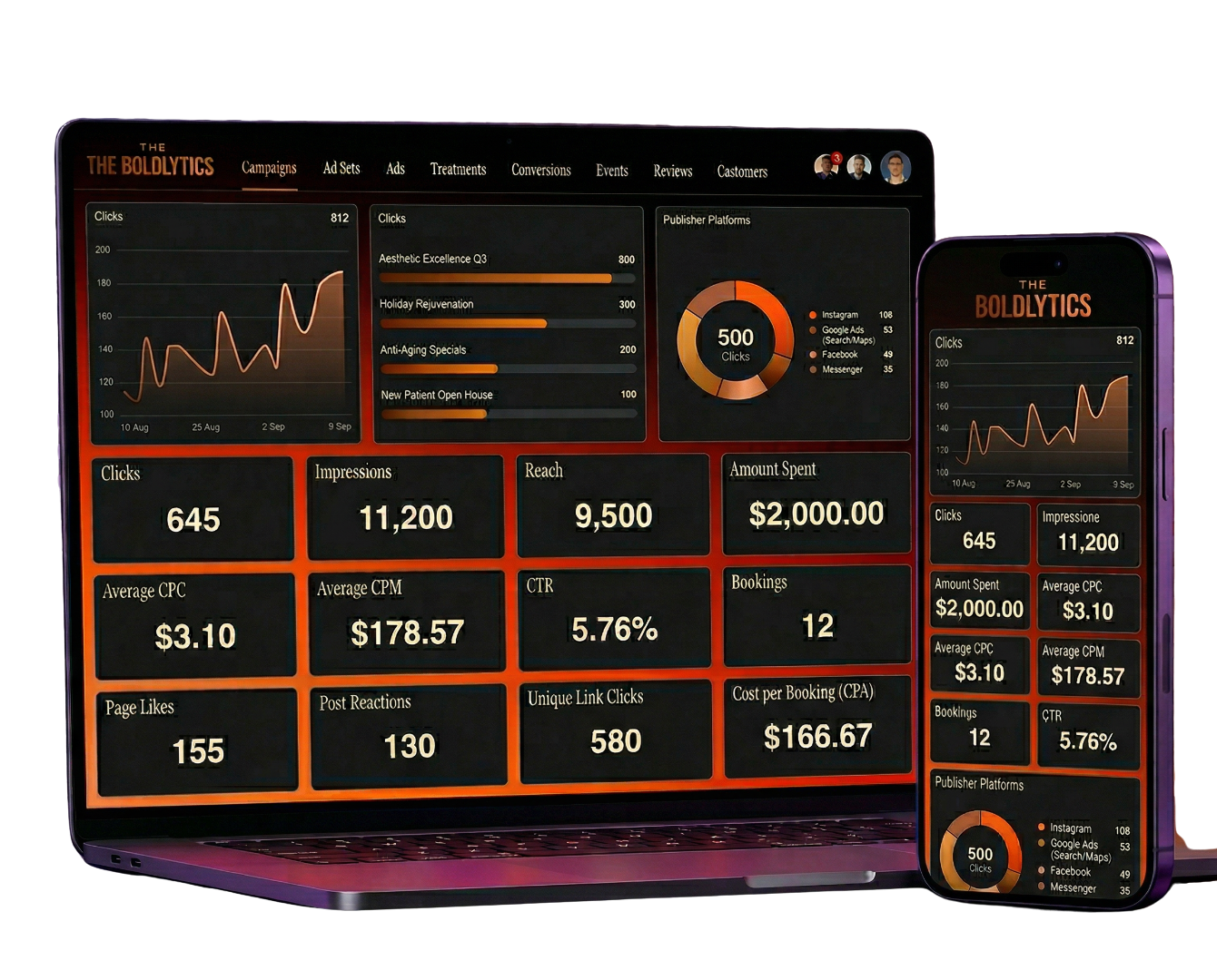 A tracking system that shows exactly which ads turn into booked treatments and real revenue. Built in the first 30 days: before any campaign launches. You'll know what's working before you spend more dollars.